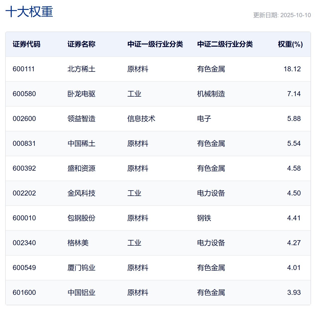 中證稀土產(chǎn)業(yè)指數(shù)主要權(quán)重股