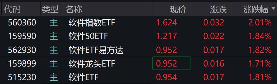 受盤(pán)面影響,軟件相關(guān)ETF漲約2%。